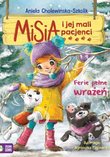 Misia wybiera się na przyjęcie urodzinowe koleżanki. Hela zaprosiła wszystkich na przedstawienie, a potem na zwiedzanie teatru od kulis. Kto by pomyślał, że właśnie tam Misia znajdzie swojego kolejnego pacjenta – świnkę miniaturkę, która utknęła między rekwizytami. Dzieci zaczęły ferie, więc Misia częściej zabiera Popika na długie spacery. W ogrodzie pana Szymona znajdują ranną sójkę, która stała się ofiarą dzikiego krogulca. Podczas zimowej przerwy mała weterynarz wraz z przyjaciółmi składa wizytę gajowemu. W drewutni niedaleko leśniczówki dochodzi do wypadku, w którym zostaje ranny gronostaj. Czy Misi uda się pomóc wszystkim potrzebującym zwierzętom? Odpowiedź na to pytanie znajdziesz w tych wyjątkowych opowiadaniach. „Misia i jej mali pacjenci” to seria stworzona przez Anielę Cholewińską-Szkolik. Tytułowa bohaterka z pomocą swojego psa Popika leczy zwierzęta – te małe i te duże, te domowe i dzikie. Jest coś, co sprawia, że dziewczynka jak nikt ma kontakt ze swoimi pacjentami – Misia rozumie mowę zwierząt. Sekret dziewczynki zna tylko dziadek Tadzio, który sam jest weterynarzem. Powyższy opis pochodzi od wydawcy.