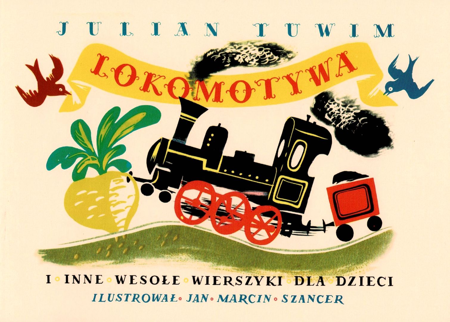 Zbiór wierszy Juliana Tuwima. Spis treści: Lokomotywa, Rzepka, Ptasie Radio