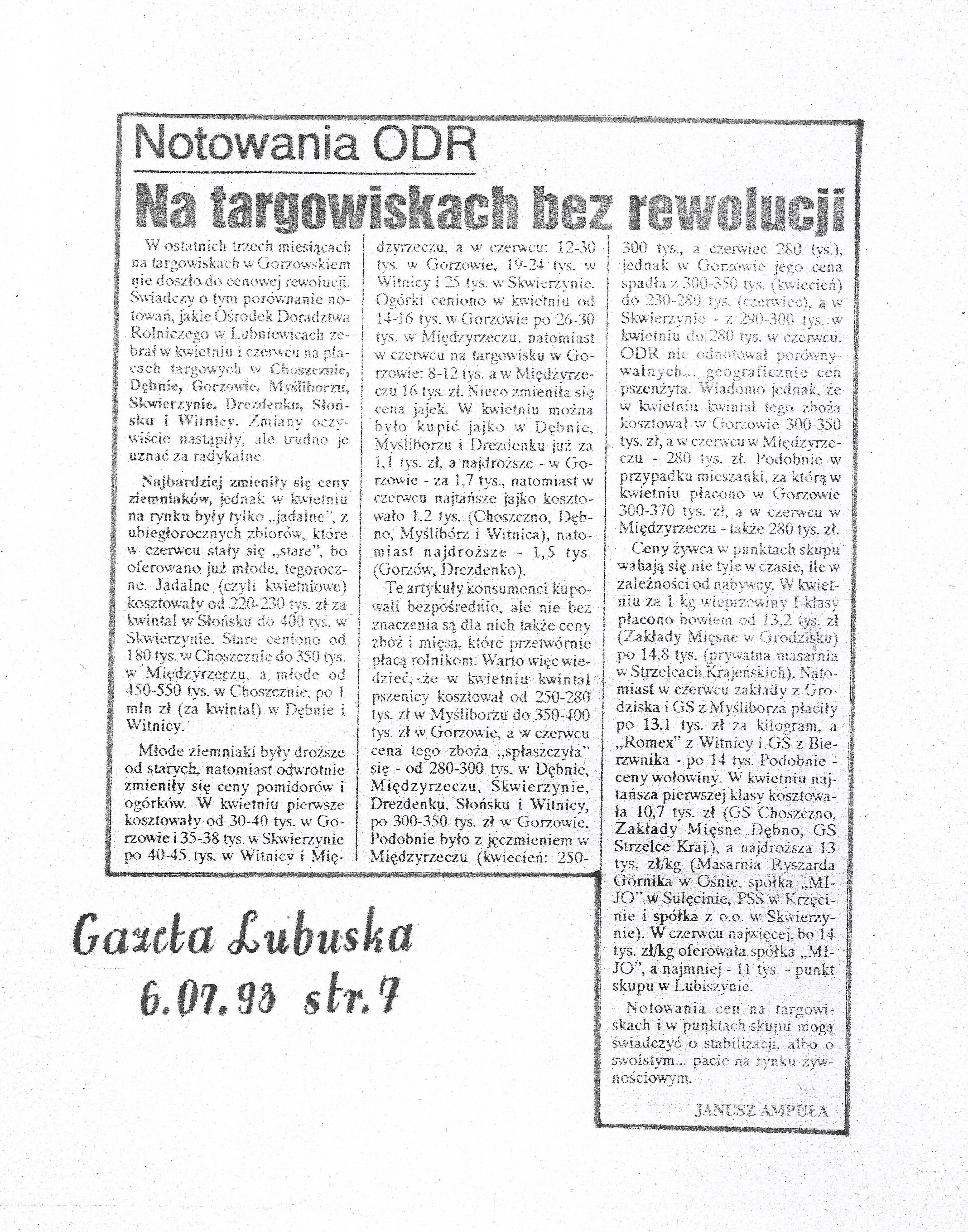 Ceny na tragowiskach w wojeództwie gorzowskim.