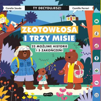 Oto nowoczesna bajka na miarę naszych czasów! Zamiast monotonnych opowieści, przestarzałych słów i staroświeckich ilustracji mamy współczesny język i grafikę, dynamiczne tempo oraz interaktywną konstrukcję przypominającą grę. Dziecko wciela się w bohaterkę bajki – Złotowłosą dziewczynkę, która gubi się w lesie i dociera do chatki zamieszkanej przez trzy niedźwiadki. Na każdej stronie musi podjąć decyzję, wybierając jedną z dwóch ikonek, która za pomocą indeksu odsyła do konkretnego miejsca w książce. Zostać w chatce czy szukać domu, poczęstować się zupą czy uciekać, wejść do jaskini w lesie czy się wycofać? Akcja bajki „Złotowłosa i trzy misie” przypomina grę, angażuje dziecko i opiekuna, którzy na nowo odkrywają przygody znanych postaci i wspólnie mogą tworzyć nowe historie. Każda książka z serii Ty decydujesz to aż 5 alternatywnych zakończeń i 22 wersje fabuły, które możecie wspólnie miksować do woli! Ty decydujesz to pierwsza tak interaktywna seria książek dla dzieci, które same decydują, jaki będzie przebieg opowieści, zmieniając i układając na nowo fabułę najpopularniejszych bajek na świecie! Dlatego książki z serii Ty decydujesz nigdy się dzieciom nie znudzą! Seria Ty decydujesz otrzymała Nagrodę Główną w kategorii książki dla dzieci w wieku 0-7 lat w konkursie Świat Przyjazny Dziecku 2022/2023, organizowanym przez Komitet Ochrony Praw Dziecka.