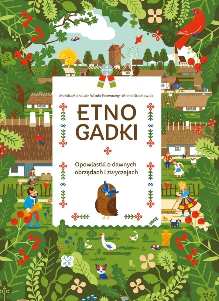 Etnogadki, opowiastki o dawnych obrzędach to bogato ilustrowana książka adresowana do dzieci i ich opiekunów, która starszych czytelników skłania do wspomnień, a przed młodszymi odsłania tajemnice świata natury i związanych z nią obrzędów i tradycji. Książka jest efektem spotkania niezwykłych twórców: Moniki Michaluk, Michała Stachowiaka oraz Witolda Przewoźnego, których pasja w odkrywaniu świata naszych przodków – pełnego mądrości, magii i tajemnic widoczna jest na każdej stronie publikacji. Autorzy wierzą, że lektura książki, opartej na rzetelnej wiedzy etnograficznej może stać się pretekstem do dialogu międzypokoleniowego, który pozwoli zachować pamięć o zapomnianych ludowych zwyczajach. Młody czytelnik dowie się z niej skąd się wzięły polskie święta? Jak żyli ludzie zanim wymyślono zegary i kalendarze? Po czym poznajemy, że pory roku się zmieniają? Dlaczego czas nie chodzi spać? Piękna szata graficzna książki to połączenie nowoczesnych trendów w ilustracji z motywami ludowymi. Książka została objęta patronatami honorowymi: Narodowy Instytut Dziedzictwa, Narodowe Centrum Kultury, Instytut im. Oskara Kolberga, Strzecha Design, Muzeum Narodowego Rolnictwa i Przemysłu Rolno-Spożywczego w Szreniawie wraz z oddziałami. Patronat medialny nad książką: Kulturaludowa.pl, TVP Kultura, Międzynarodowe Centrum Kultury w Krakowie, Europejski Rok Dziedzictwa Kulturowego 2018
